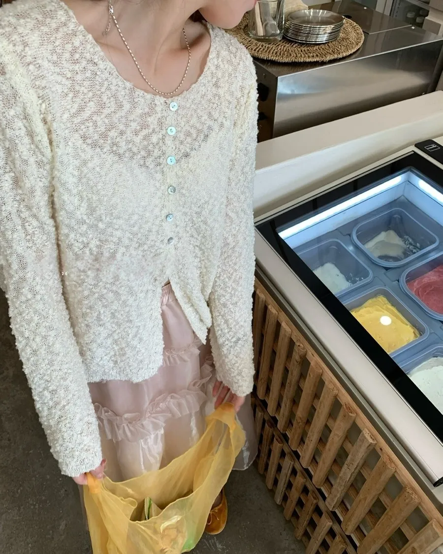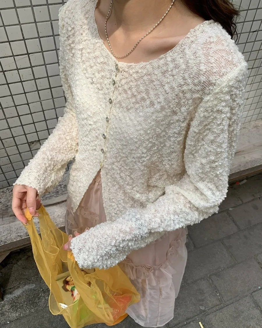 排扣設計加上微短版型,剛好落在腰線位置,搭洋裝或高腰下身比例都很好