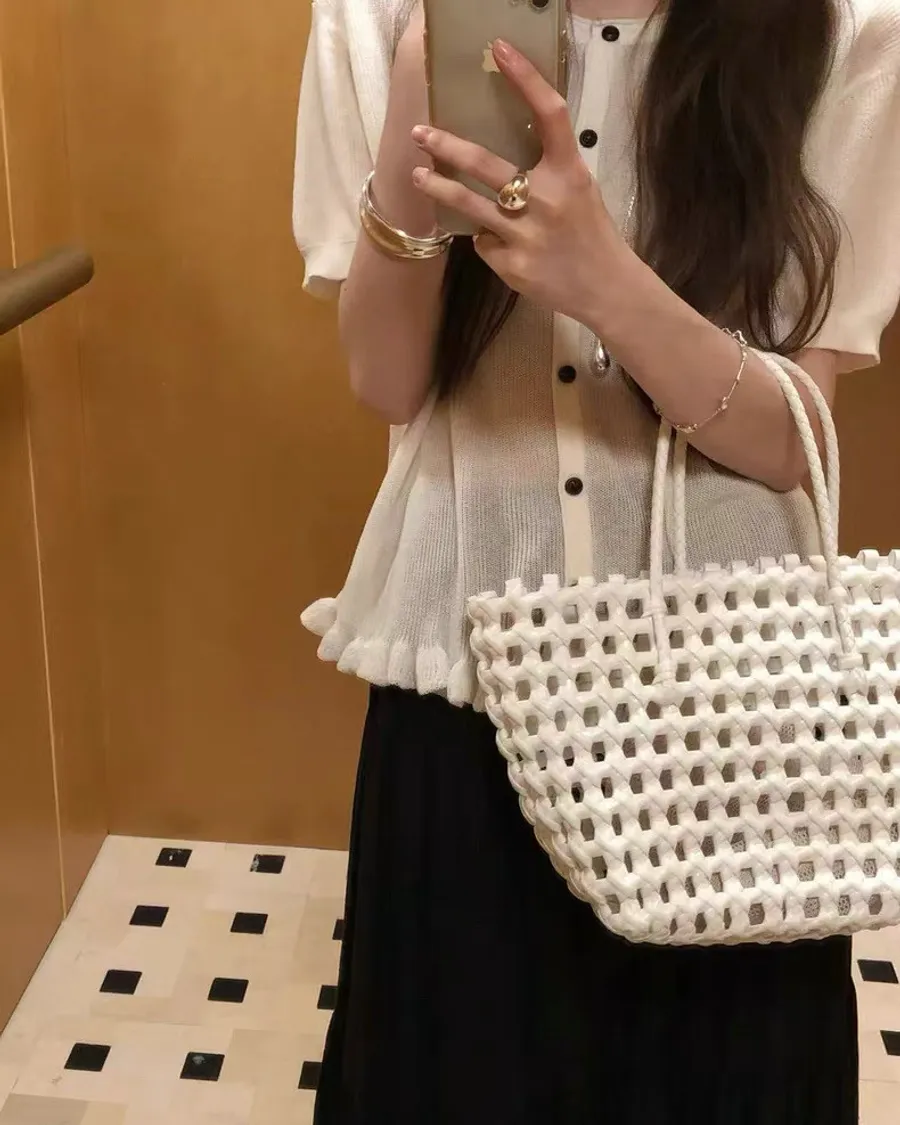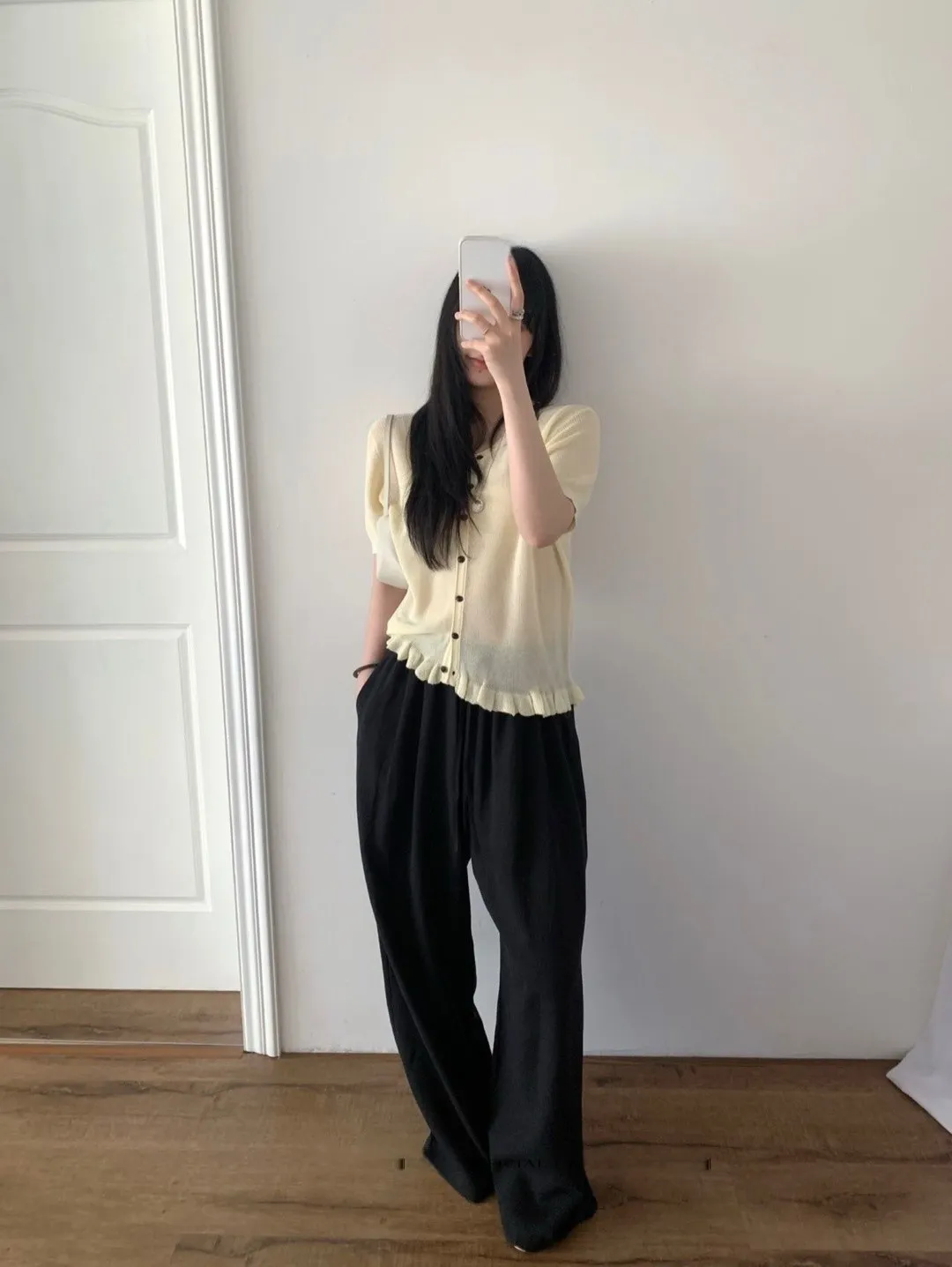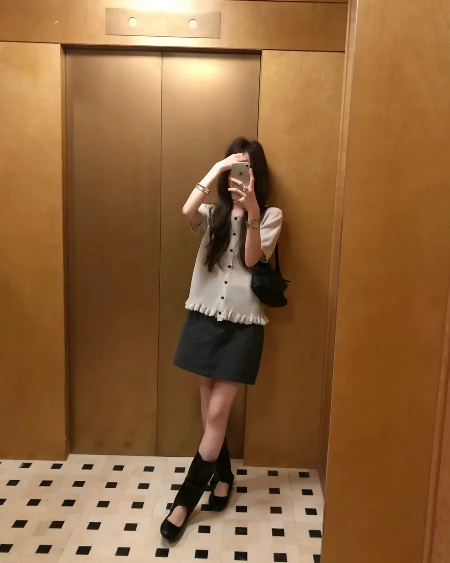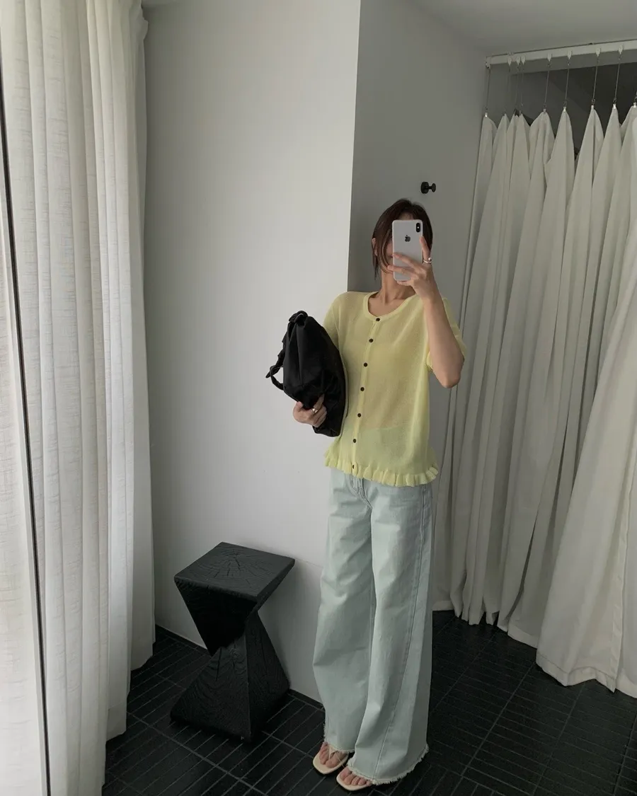 耐看的小溫柔針織,整排排扣加上微微不對稱設計穿起來不單調反而有細節感下擺自然荷葉收邊,剛好修飾腰線又不會貼肚布料柔軟輕薄,單穿舒服、當小外套也可以,是那種日常很好搭、會默默一直穿的款