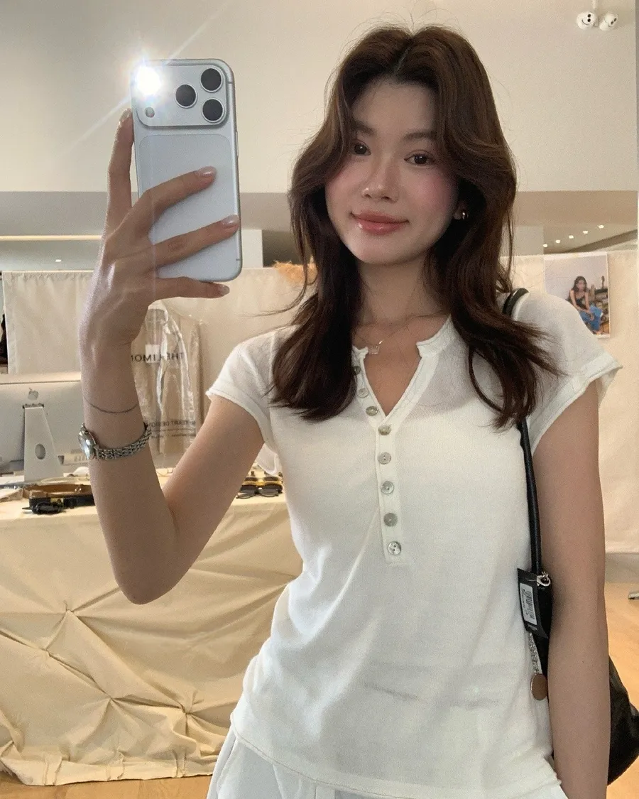 布料輕薄帶點透氣感,貼身但不悶,整體線條是順順收的,很顯身形